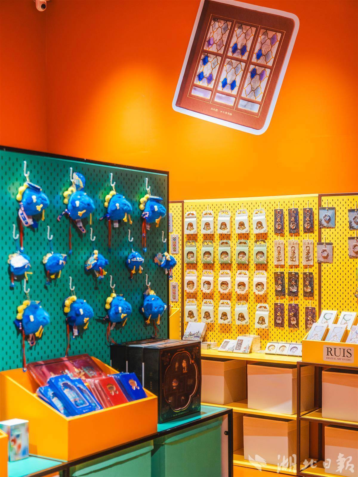 首日现场,故宫博物院的冰箱贴,中国国家博物馆的凤啾啾凤团团玩偶、凤冠金属拼接玩具,湖北省博物馆的“一绾青丝”系列发簪,武汉和平鸟“蒜鸟”玩偶等文创都很受欢迎。